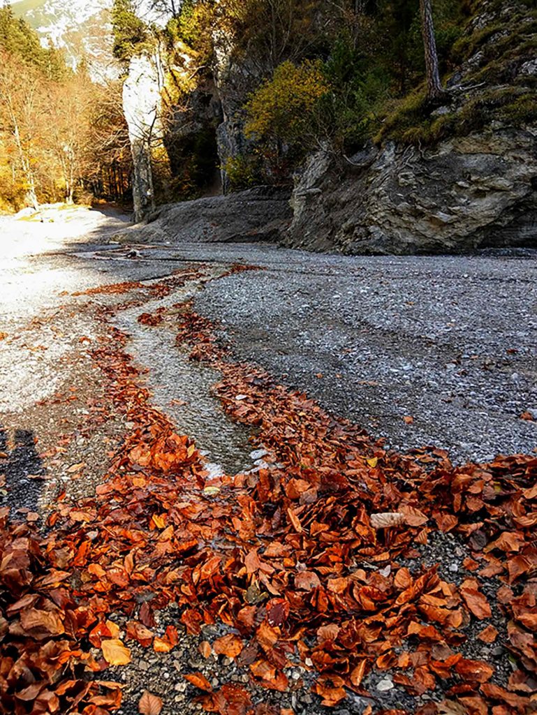 Gehe hinaus in die Natur und tauche ein in diesen wunderbaren Herbsttag. Beobachte wie sich die Blätter verfärbt haben und sich allmählich zersetzen. Nebelschwaden verzaubern die Landschaft, der Reif ziert Wiesen und Dächer, die Luft ist kühl und der Winter naht.
